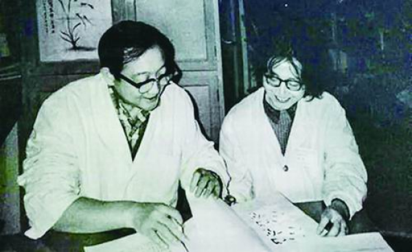 1986年,吴旻(左)正在指导博士生胡楠。中国医学凯发k8肿瘤医院供图